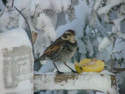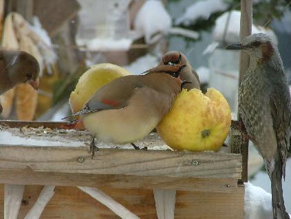 レンジャクが我が家に最初にみえたのが2月8日。餌があるのがわかると毎日来ます。りんごだけ食べて帰ります。