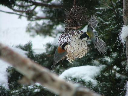 脂身はカラスやネコに食べられるので吊るしてみました。