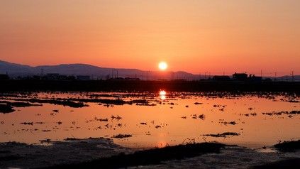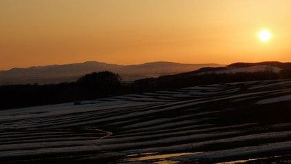 昨日の夕方の画像です。こんなきれいな夕日だったので今朝はガチガチに凍っていました。