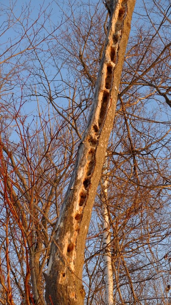 何年か前にアカゲラがつついた跡ですが森のお医者さんは手術が上手です。ちゃんと患部が癒やされて居ます。