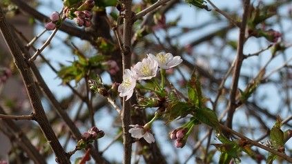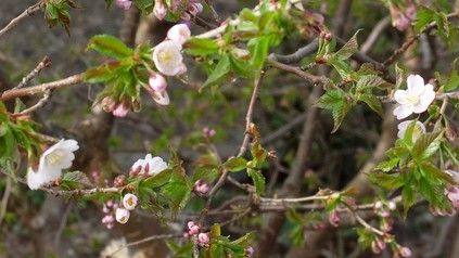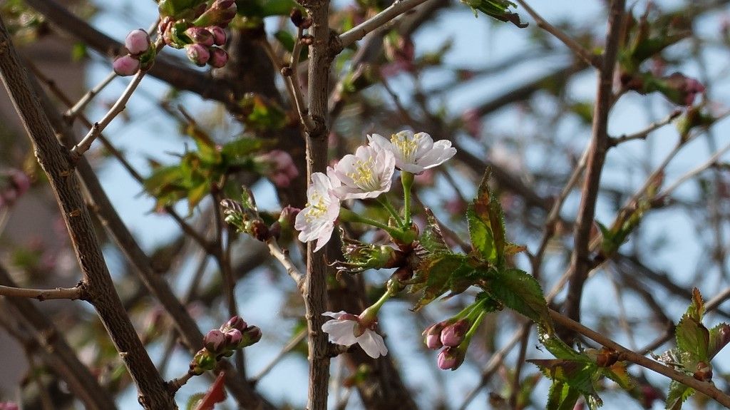 夜温があったので夕方には2輪だったつぼみも朝にはどの枝も開花していました。 気を揉んでいた日が数日続きましたがこれでやっと安心しました。数日後には市内のあちこちで桜が開花するでしょう。
