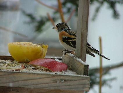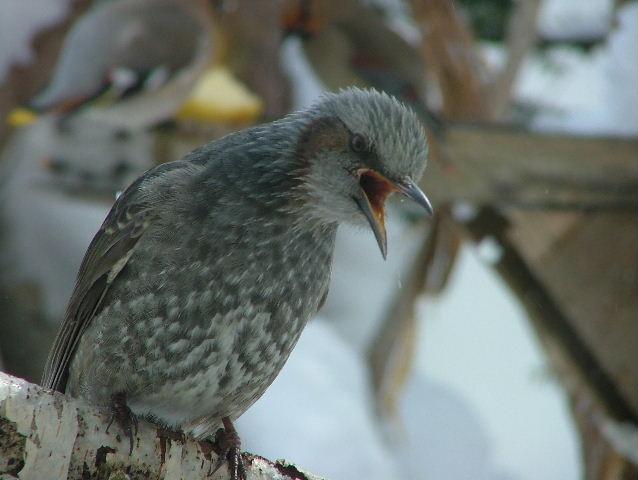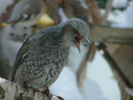 雪が降ったりすると食べ物がなくなるので餌台に寄ってきます。