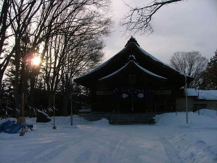 お社のバックに太陽が沈んでいきます。このあとすぐに雲の中に消え