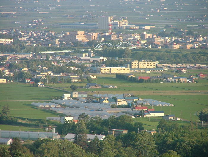 峠からよ〜く眺めて観てみると町の様子がわかりますね。 手前のハウス群、タングステン、深川橋、病院、NTT、マイナリー