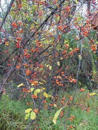 色合いもいい感じです。このまま丸めて玄関リースにしようか。 この実は野鳥のえさになっているので、我が家の餌台の下から沢山の芽が出てきます。