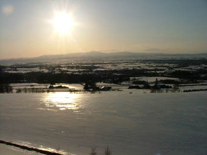 トトロ峠から西に沈む夕陽をゲット。妹背牛や北竜の方向ですが・・・