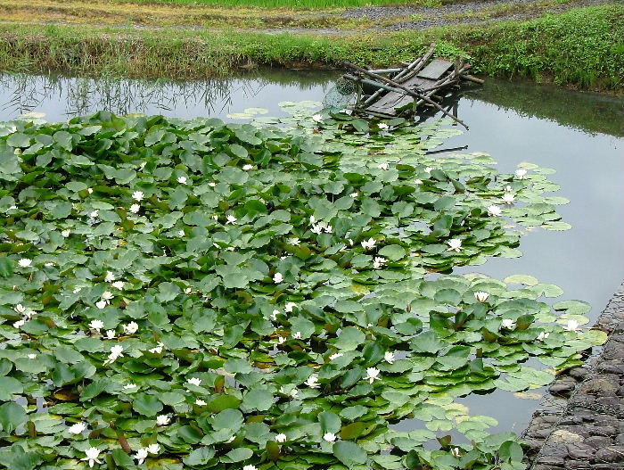 ハスの花咲く池
