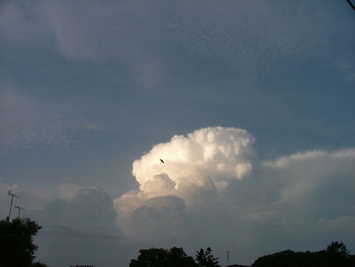 今日の夕方はみるみる大きくなる積乱雲が明るく照らされて綺麗でした。稲妻が何度か走りましたが、これはチャンスが合わず敗退・・。