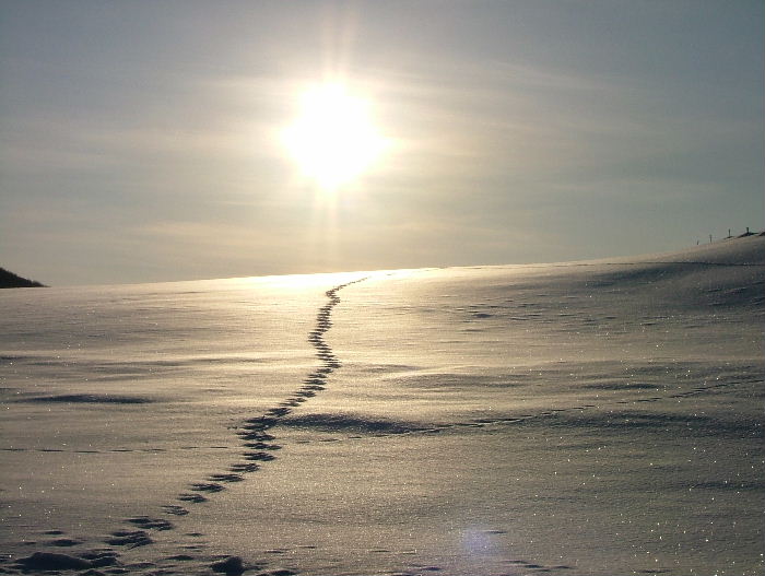 まさか山に向かっているわけじゃありませんよね。一筋の足跡が好きです。