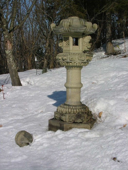 で、灯篭の頭が雪の影響かはたまた地震の影響か。。。落ちていました。