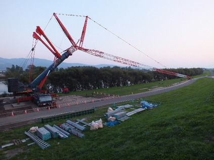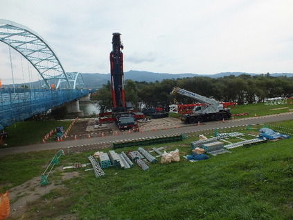バラバラにしないと運べません。それには又、別のクレーンが必要なんですね。 ようやく半分が終わったようなので、後は音江側から作業をするのかな? もう一回雄姿が見られそう。