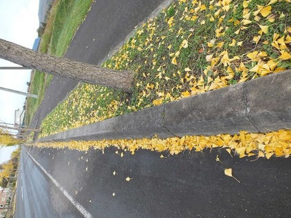 昨日の風で葉は落ち飛び散って見る陰もなくなりました。静かに葉が落ちた後の朝は本当にきれいなんですが・・・。