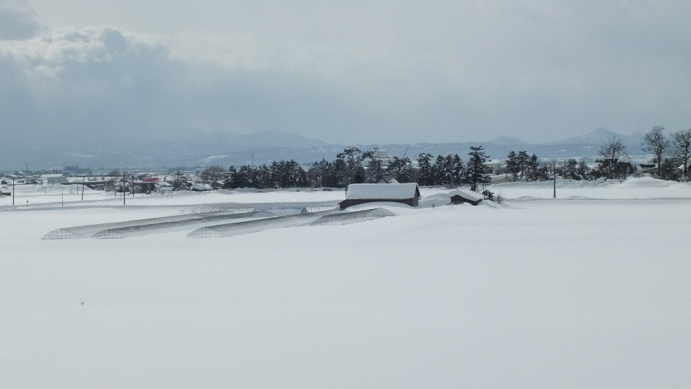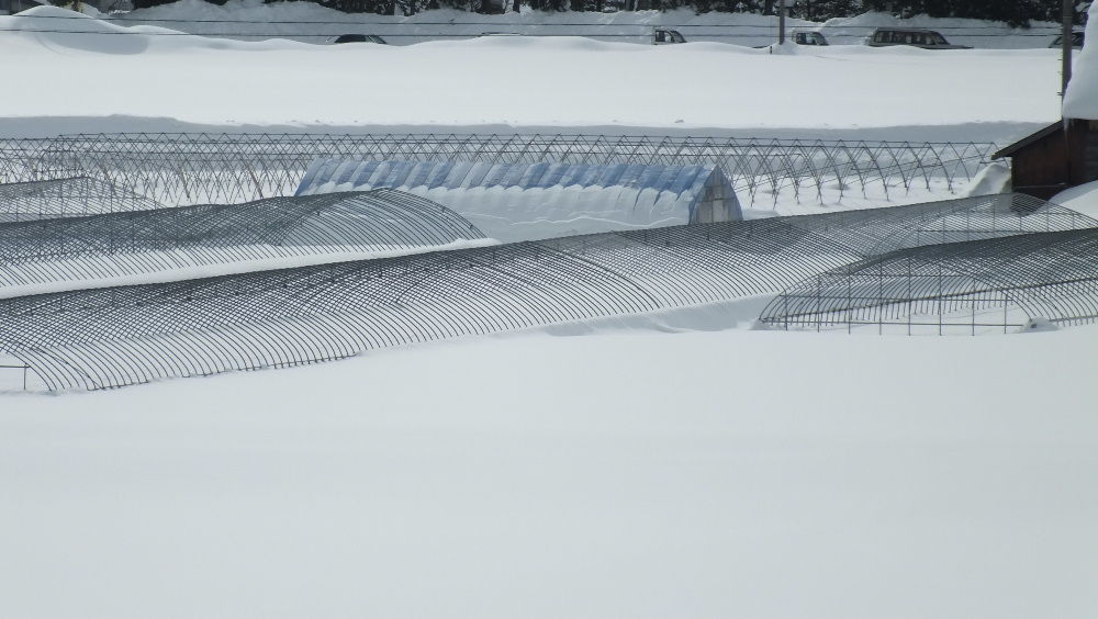 ハウスが埋まりそうです。 場所によっては雪融けが遅れそうですね。 今年は道路の雪壁が高くて走っていても景色が見えません。