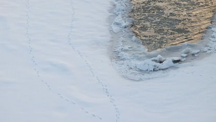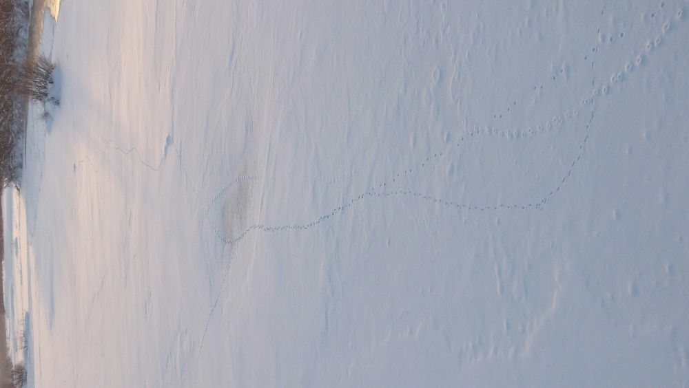 完全にふさがりませんね。あちこちにキツネの歩いた足跡があります。