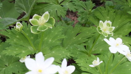 山道の花もそれぞれの季節を咲き分けていますがニリンソウの中にミドリ色をさがす季節になりました。