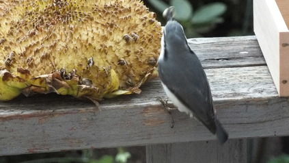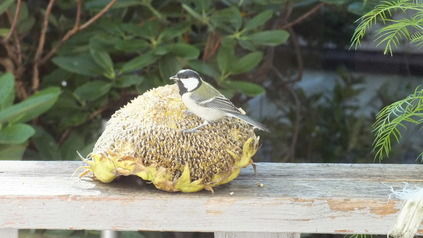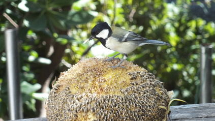 もう残り少ないひまわりに入れ替わり立ち代わり飛んできてはくわえていきます。生っぽいほうが美味しいならもっと早くに食べてそうですがある程度実が締まらないと食べないようです。 南瓜の種も乾燥していないと美味しくありません。似たようなもんかな~と思います。 世間では「NOだ!」さんやら「危べ~」さんが日本を引っ張っていくようですがどちらもいやだね~。こちらには選択肢がないので指をくわえてみてるだけ。 あきらめの気持ちを込めてこちとらはキラキラ輝くひまわりの種でも加えてガマンするか・・・。