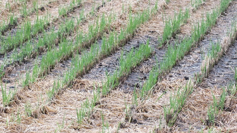 今年はいよいよ暖かいようです。このまま稲株が伸びたらもう一回お米が取れるかも知れません。 ずんずん伸びています。しかし、力強いなぁ~ こんな極端な風景も初めてです。