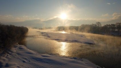 車での外気温はマイナス13度でした。思ったほど冷え込まなかったですね。快晴に恵まれた日曜日の朝でした。