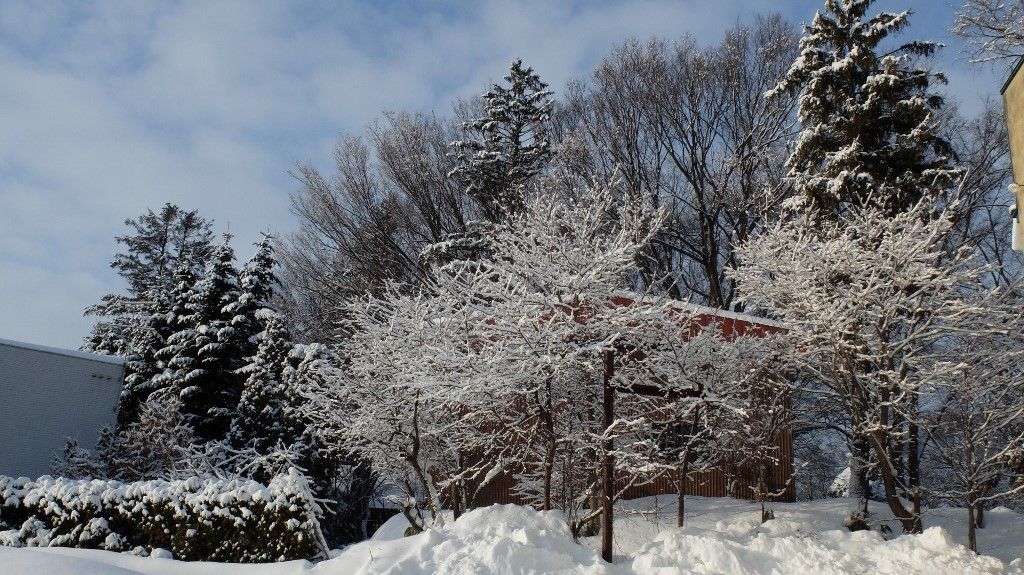 よく冷えた朝になりましたねぇ~。気候の変化が忙しい。暖気に寒気の繰り返し・・・。 風がなくて枝に乗った雪もふんわり残ったままです。早朝は樹氷で覆われていた樹もあったんでしょうね。きっと。