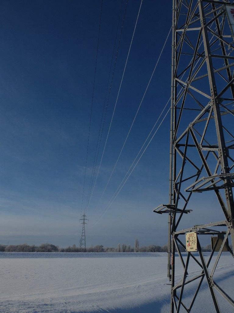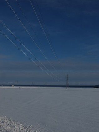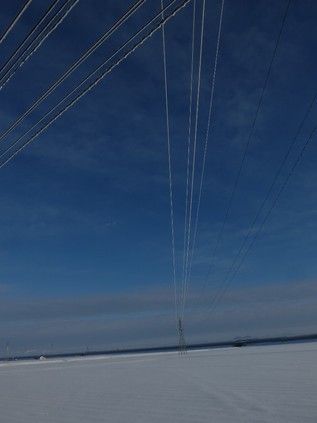 今日の朝は強烈に冷えそうです。 送電線ですが全部の線に霜が付くわけでなく冷えない線もあるのかな?