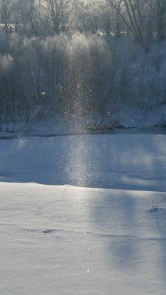冷えた朝のサンピラー。見れそうで見れない自然の贈り物です。