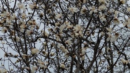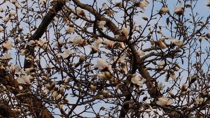 生き文のコブシも朝には開花していませんでしたがお昼には開花したようです。夕方には咲き乱れていました。 街中の方が咲くのが遅いんですね。3~4日は遅れている気がします。さすがに桜は街中の方が早そうです。