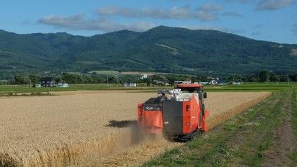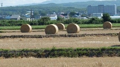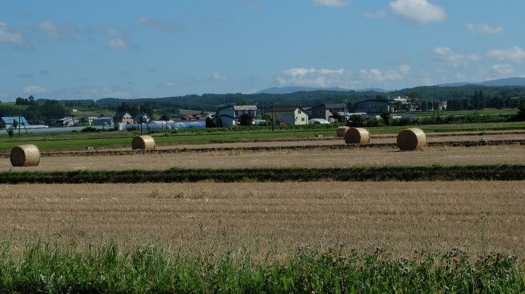 雨で悩まされて収穫もどうなることかと心配しましたが、今度はお天気の回復が極端で旱魃の心配です。雑草の上をも歩くとカリカリと音がするほどで枯れ始めました。 麦の刈り入れもどうなる事かと心配しましたがコンバインが足元も軽く走りまわっています。乾燥も十分で麦稈ロールが転がっている様子は秋近しの感がしてきました。