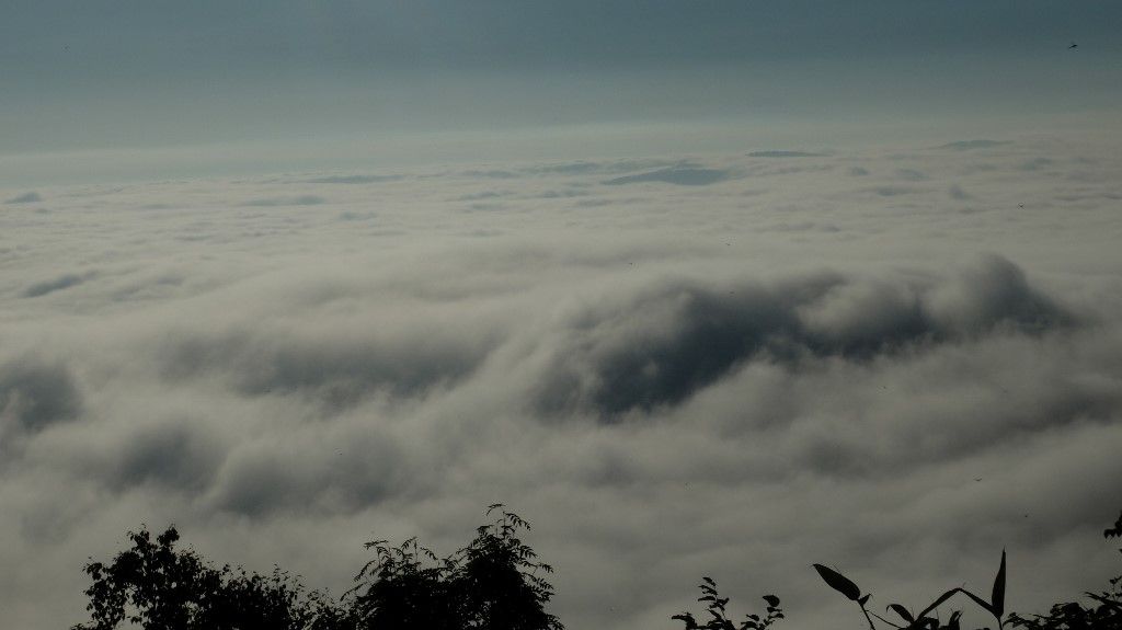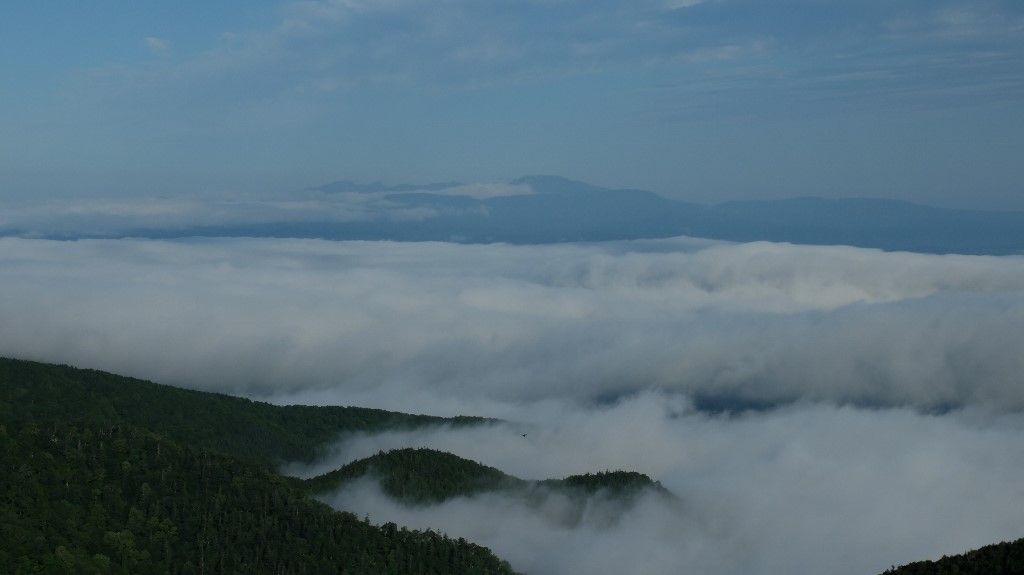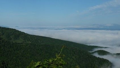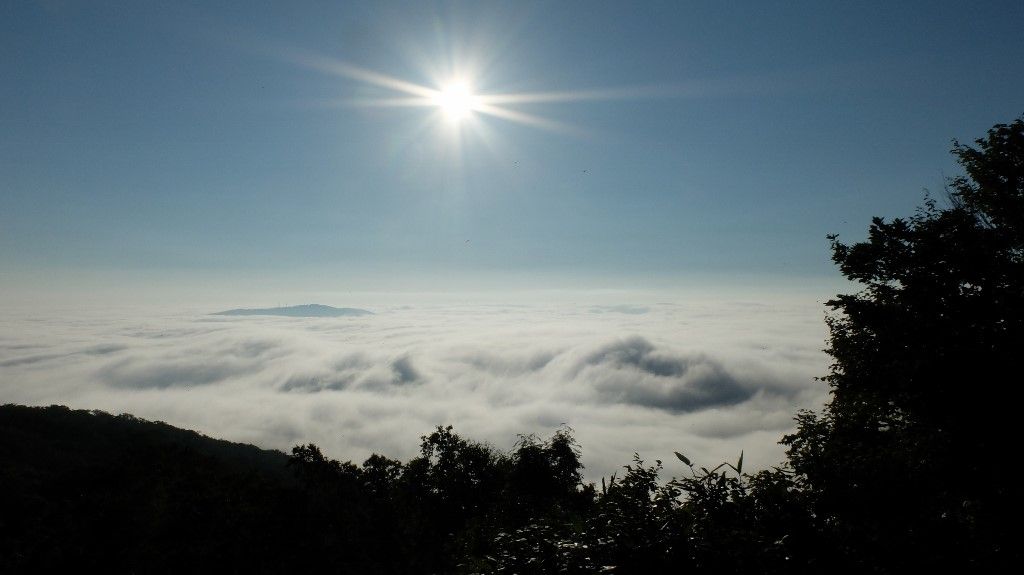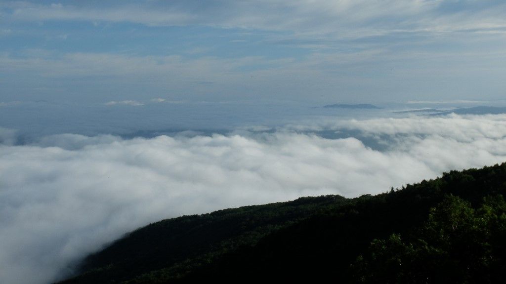 連日の雲海で心ウキウキです。行くまではドキドキです。 今朝のは強烈でした。濁流の様な波打つ感じの雲海が足元に拡がっています。 関東地方の方はとんでもない方向に進行をしている台風に戸惑っているのではないでしょうか。当地は晴天で本日から夏祭りで絶好の祭り日と成りました。明日が花火ですがこちらも問題なさそうです。
