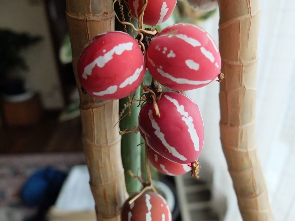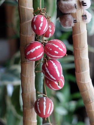 夏場にグリーンカーテンにしていたんですが、ようやく緑色だったカラスウリの実がどんどん赤くなってきて可愛らしくなってきました。 部屋の中に吊るして飾っていますが、これで又種が採れそうです。 雪が融けてきました。なかなか本格的な冬になりませんね。体にはいいんですが気分が今一です。