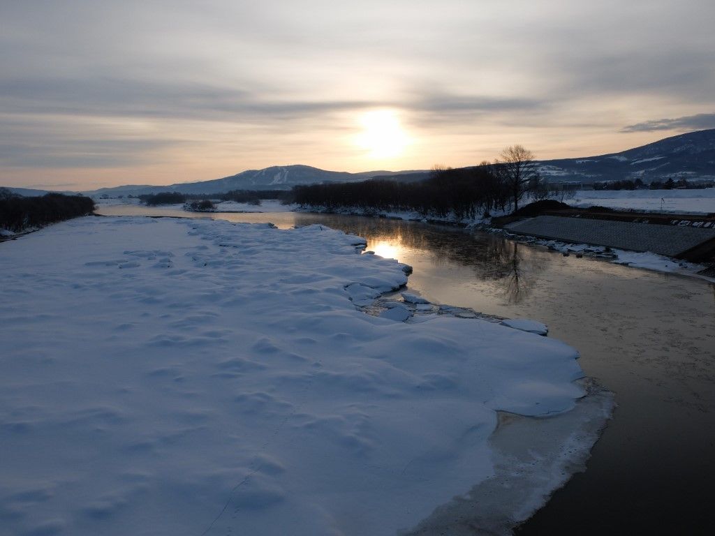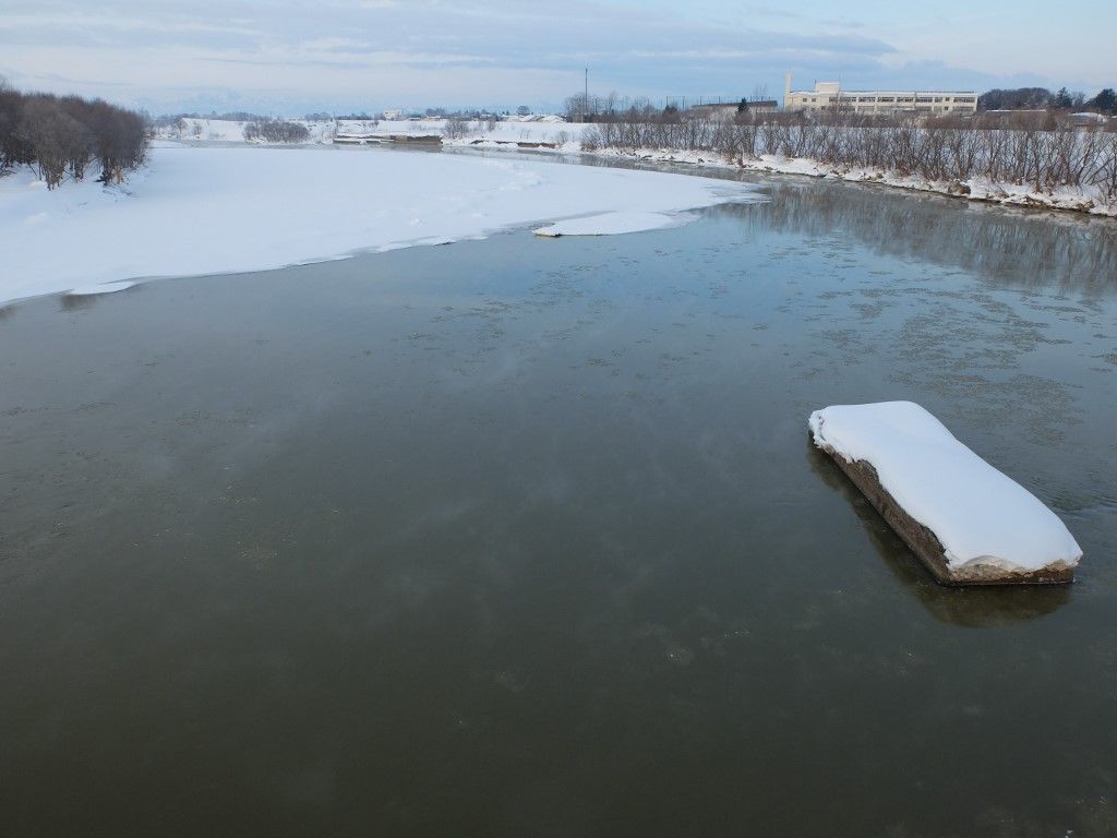 水面には薄氷が浮かんで流れていきます。