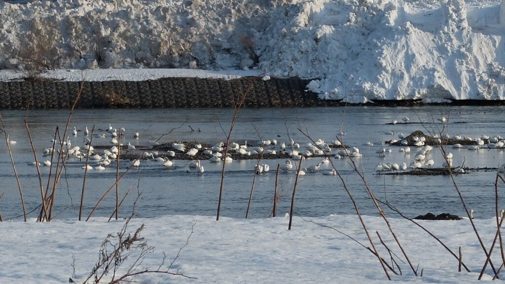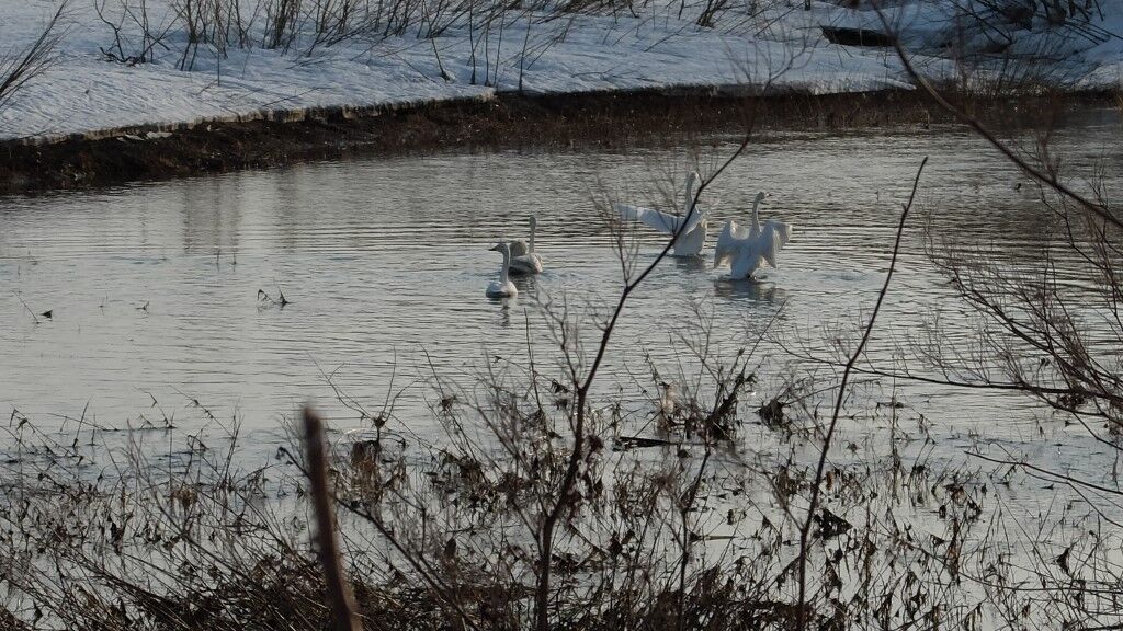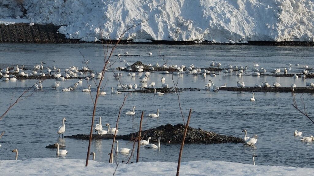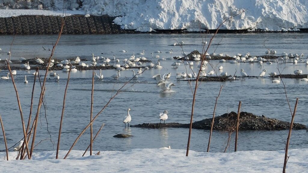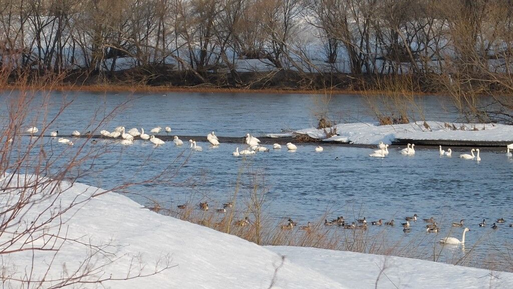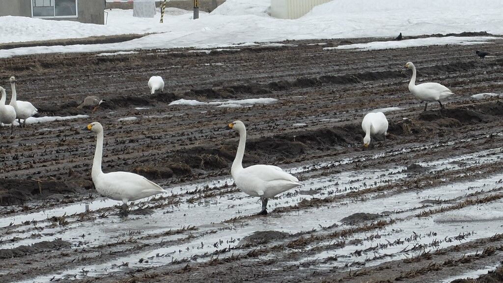 上空を飛ぶ白鳥などは早くから鳴き声で確認できていましたが雪融けが進んでいる場所には早速姿を現しました。当分賑やかになりそうです。