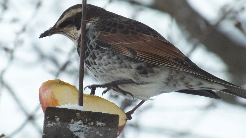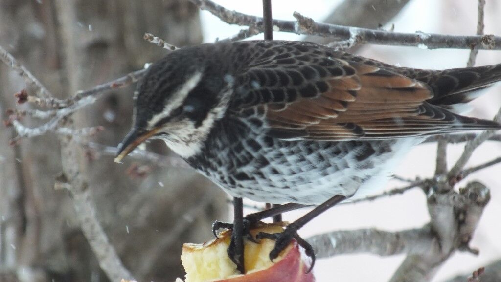 ツグミが餌場に入り始めました。今年はレンジャクはくるかなぁ~