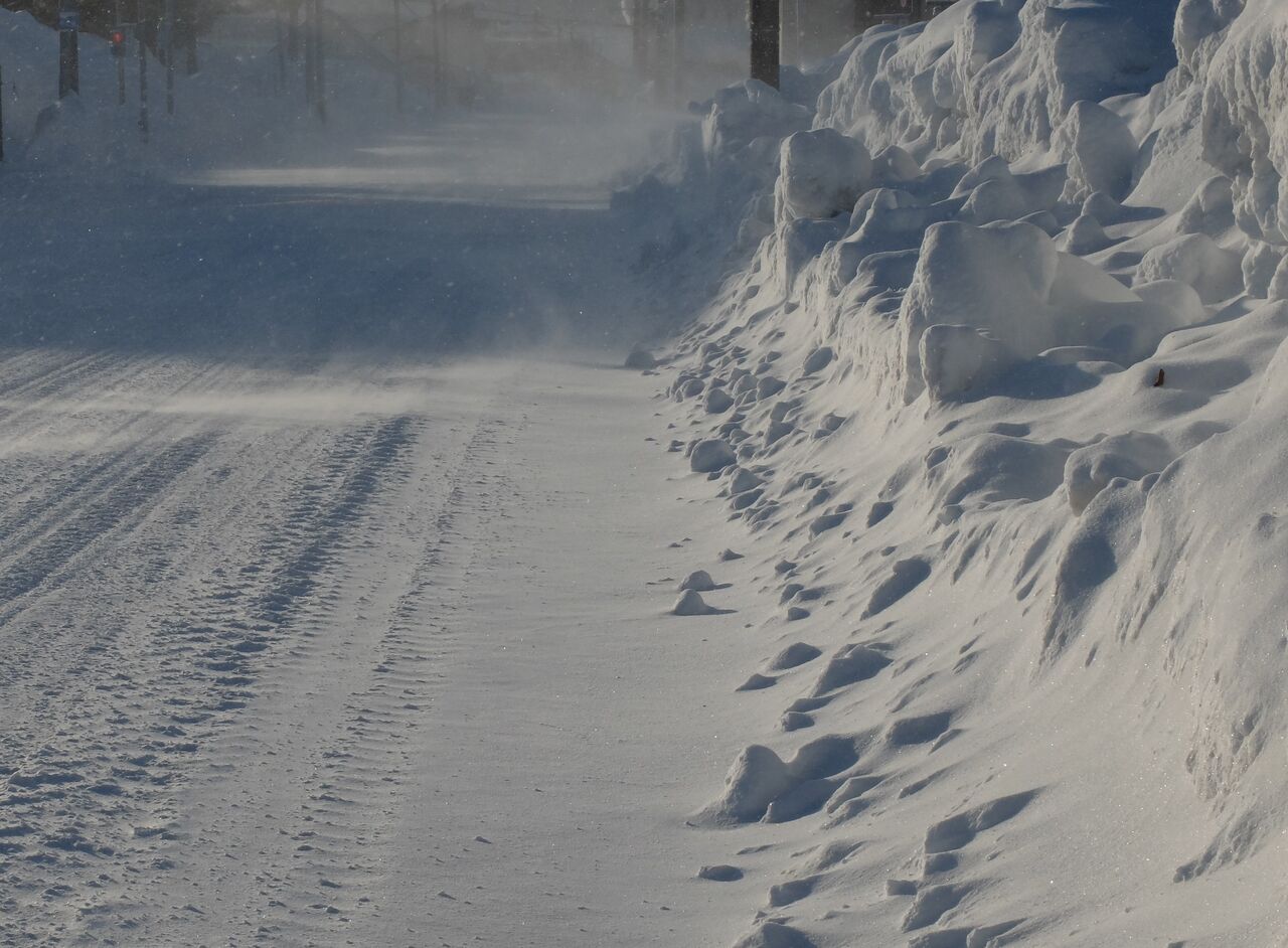 吹雪いては時々青空も見えたりですが郊外はひどいでしょう