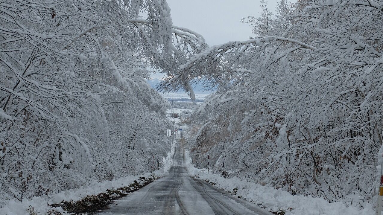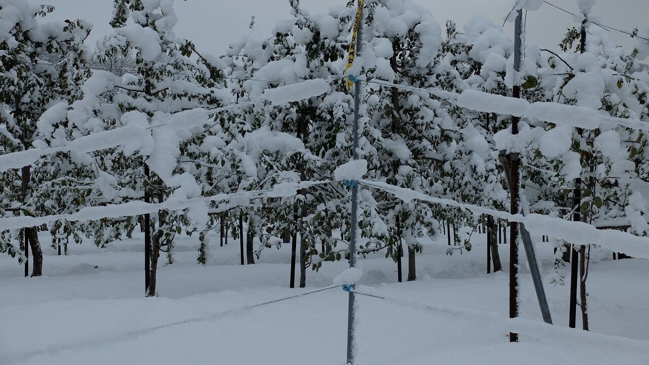 木に湿った雪が付いてこのままだと枝が折れそうです。