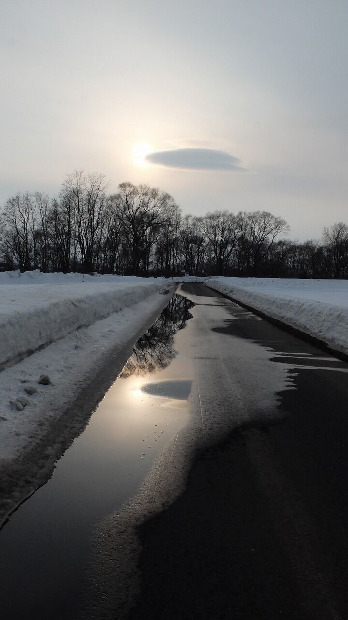 道路は水たまりで